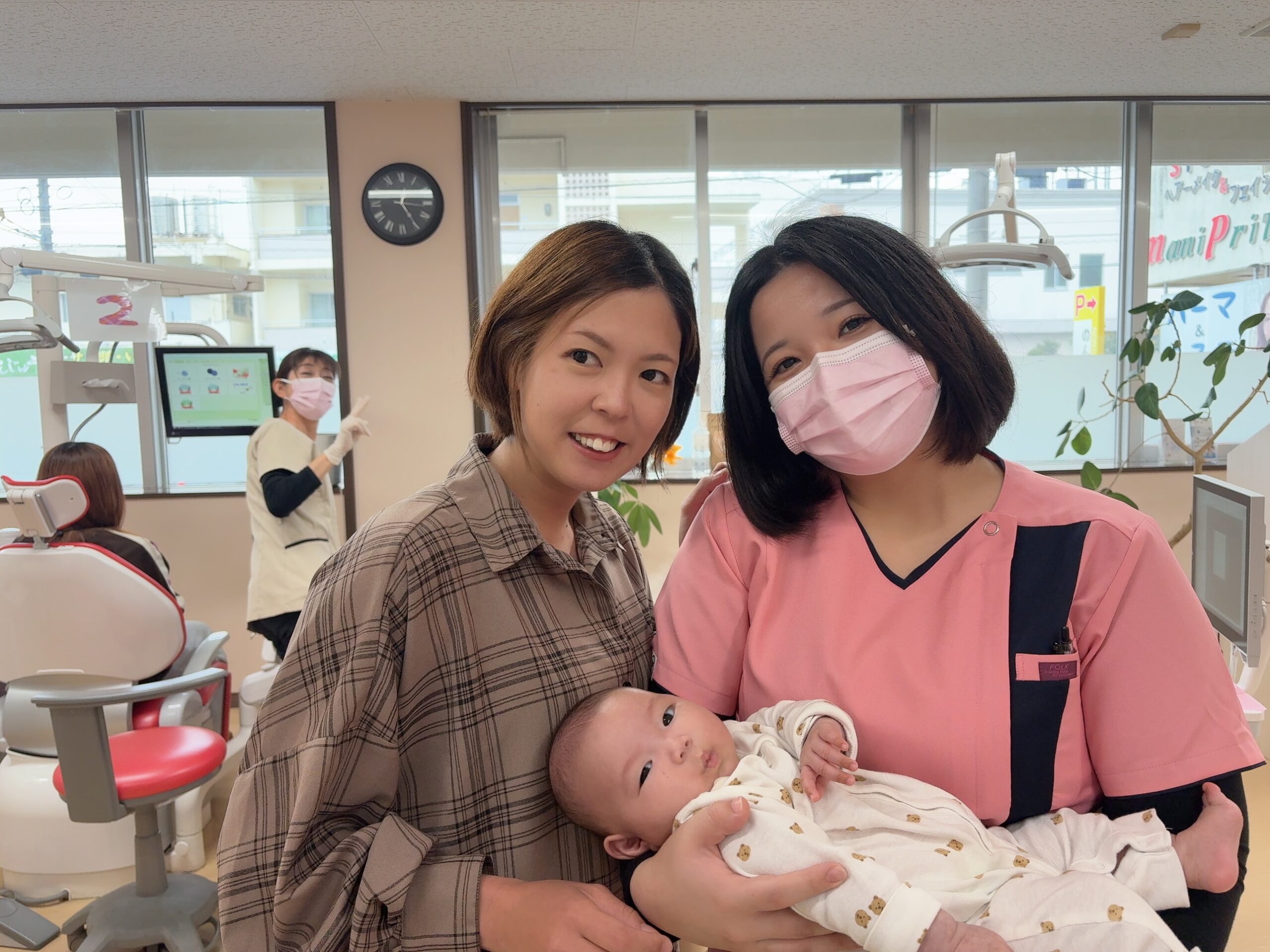 産休中の比嘉さんが、かわいい赤ちゃんを連れてクリニックに遊びに来てくれました。